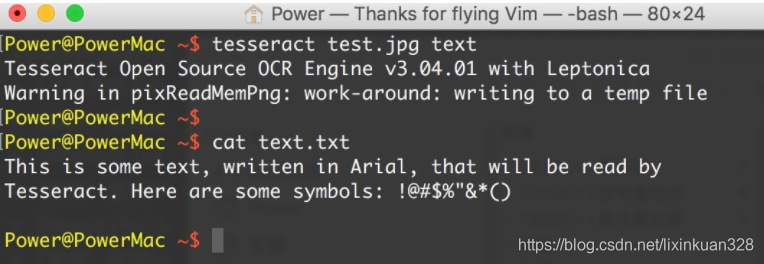 通过下面的命令运行 Tesseract,读取文件并把结果写到一个文本文件中: `tesseract test.jpg text