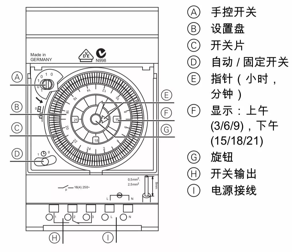 1.设置当前时间:调节旋钮G,使指针指示当前时间。