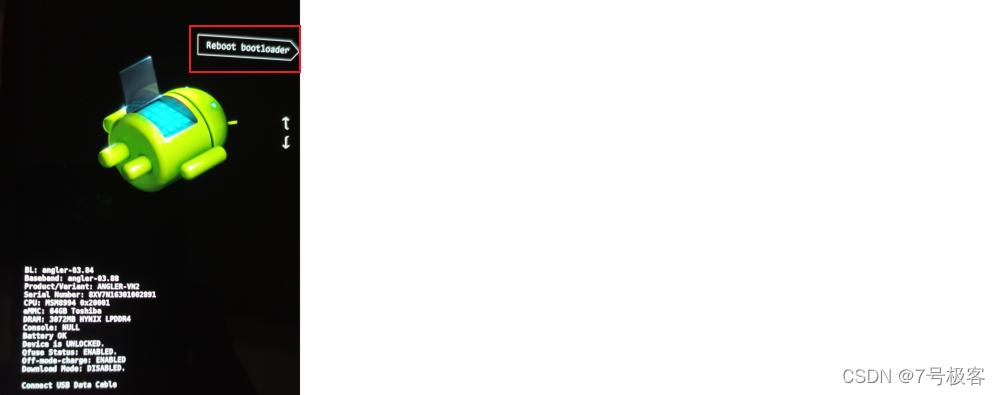 3.10、通过输入以下命令,手机进入bootloader模式