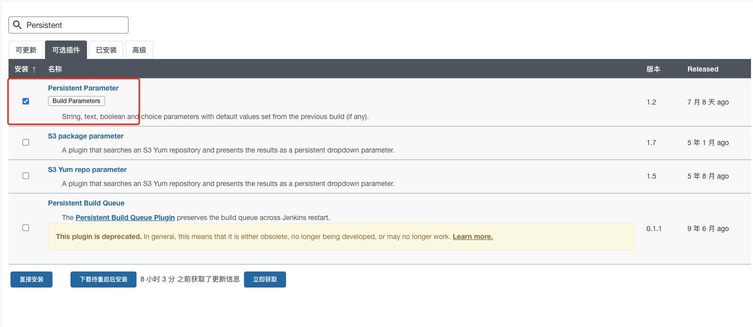 1、安装Git Parameter的插件,Persistent Parameter的插件(版本)