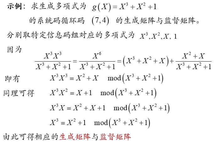 根据推论,且该多项式对应的码字具有系统码结构,因此该码为系统码结构的循环码。
