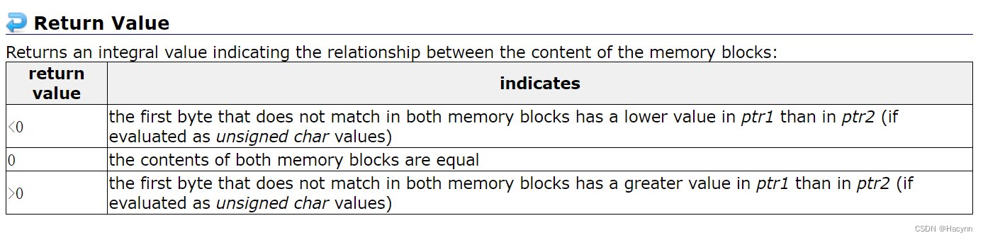 int main() { int arr1[] = { 1,2,3,4,5,6,7 }; int arr2[] = { 1,2,3,7 }; int ret = memcmp(arr1, arr2, sizeof(int) * 3); printf("%d\n", ret); }