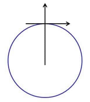 假设是一个圆,如下,圆心到该点就是其切面法线,这个向量很容易得出,通过点乘可以很容易的得到法线对应该点的垂线。