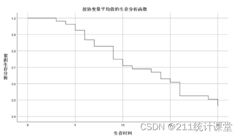 随着生存时间的不断延长,累积生存率呈现逐步下降的趋势。横坐标上的每个点,代表经过某个特定时间点的时候的生存概率。