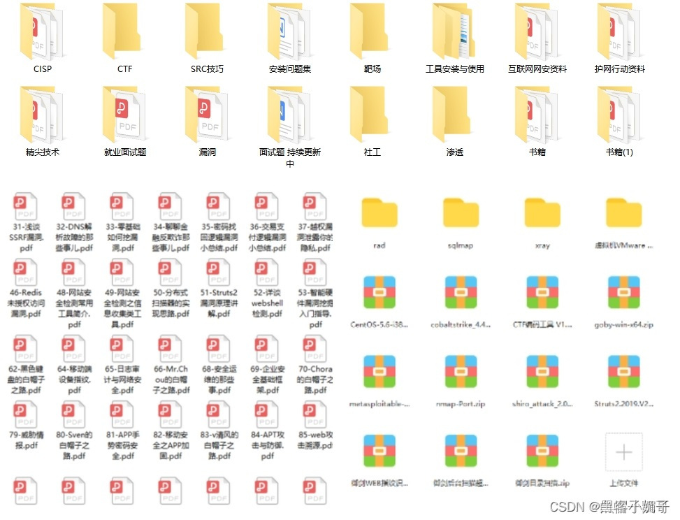 如果你向网安入门到进阶的全套资料,我都打包整理好了,需要学习的小伙伴可以V我找我拿~