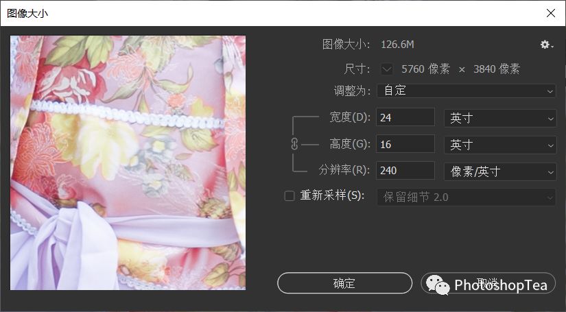 比如,一张 5760 x 3840 像素的单反照片,按 240 PPI的分辨率,其印刷大小可达 24 x 16 英寸。