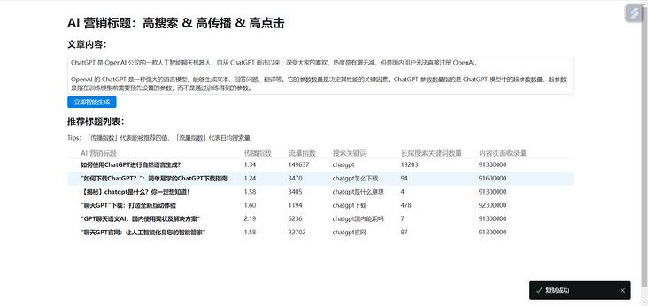 - 通过 AI 技术再次生成高传播和高点击的标题