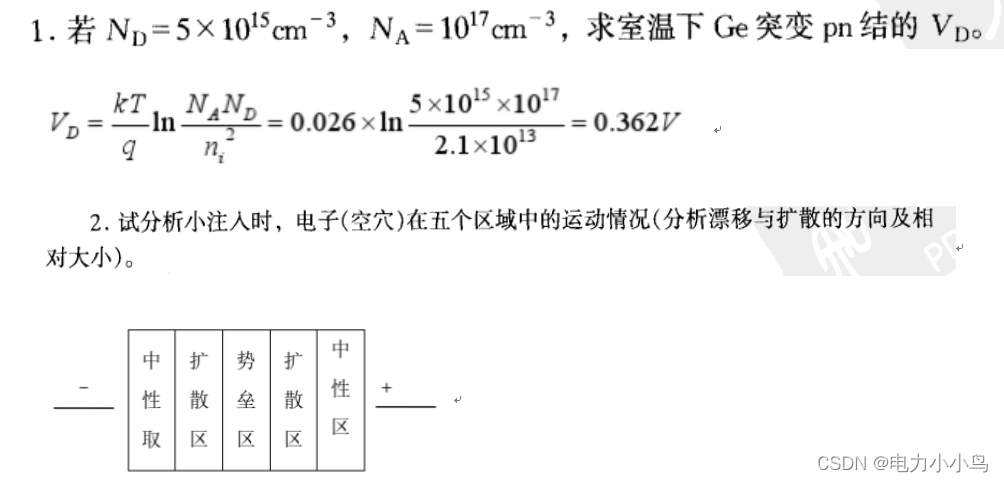 解:小注入时,外压基本上降在势垒区,中性区和扩散区中电场很弱。