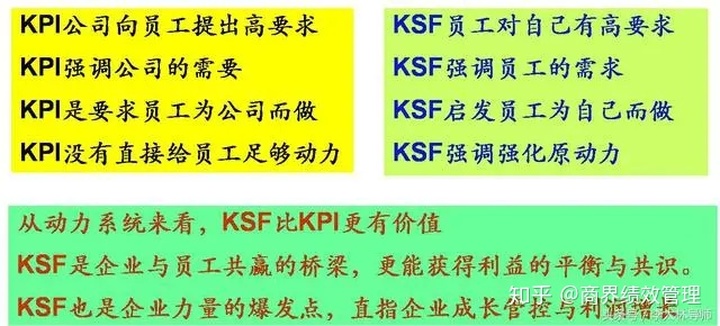 - KPI是要求员工为公司而做,KSF是启发与调动员工为自己而做。