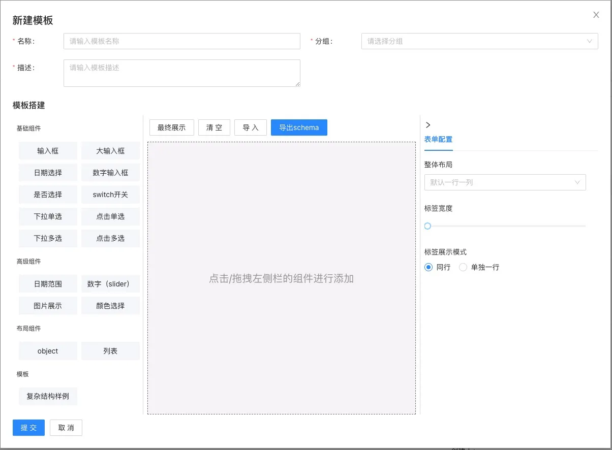 - 模板设计。组件化,可拖拽自动生成数据模板。