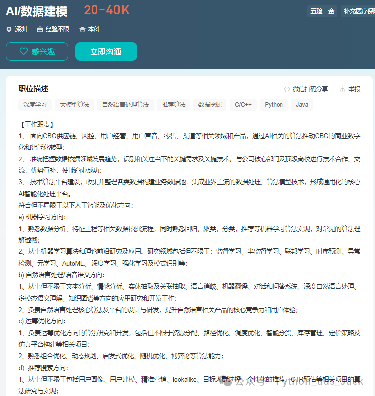 ● 岗位:算法工程师、数据工程师、机器学习工程师、程序开发工程师、人工智能运维工程师等。