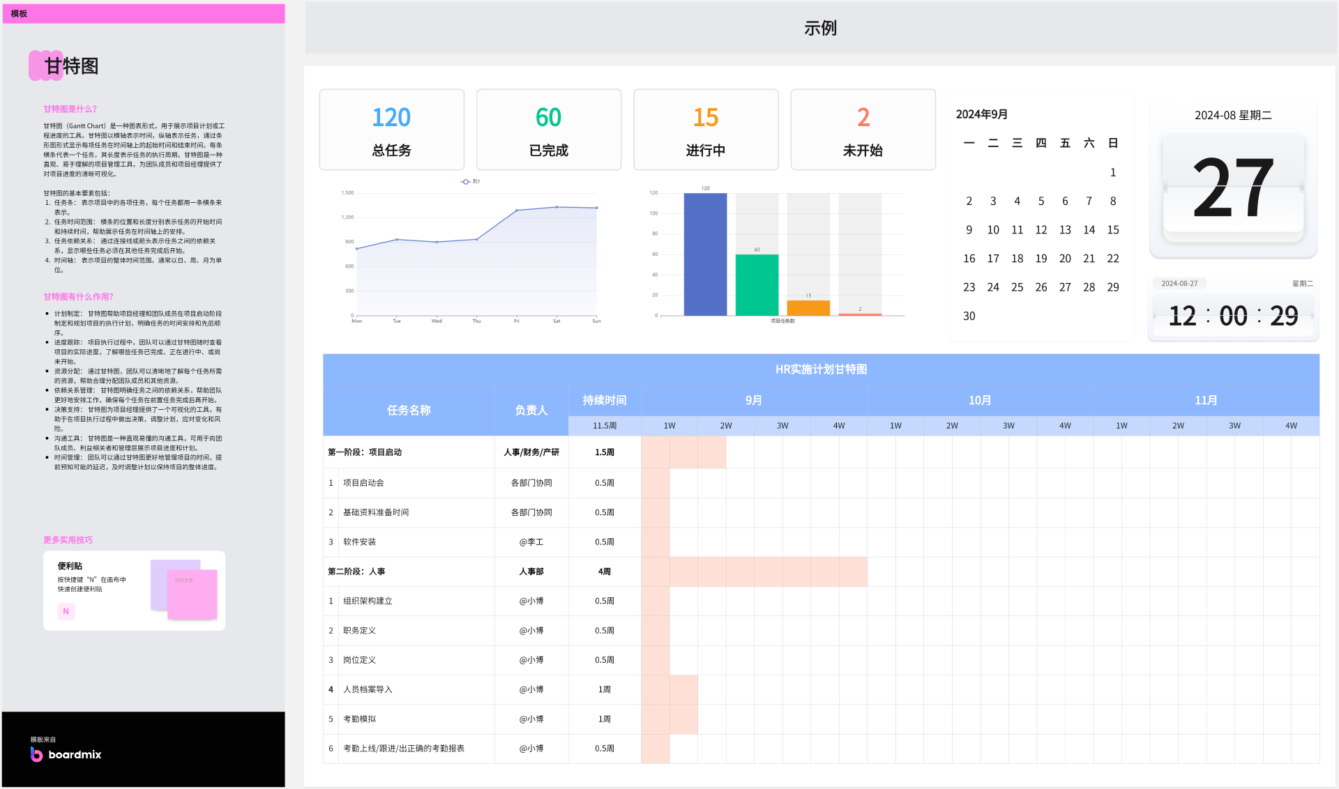 5. 简洁为王:虽然boardmix提供了丰富的设计元素,但在制作甘特图时,还是应该遵循少即是多的原则,保持信息的清晰和重点突出。