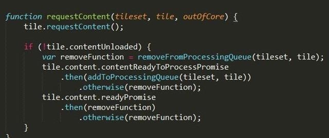让我学到的一点就是RequestScheduler类,大概思路是规定每次并发的最大请求数,每一帧收集下载请求但并不发送该请求,在下一帧对请求队列排序(相机远近),然后再发送。实现的很巧妙,方便管理。毕竟在海量数据下,有这样一个Manager来控制是很有必要的。