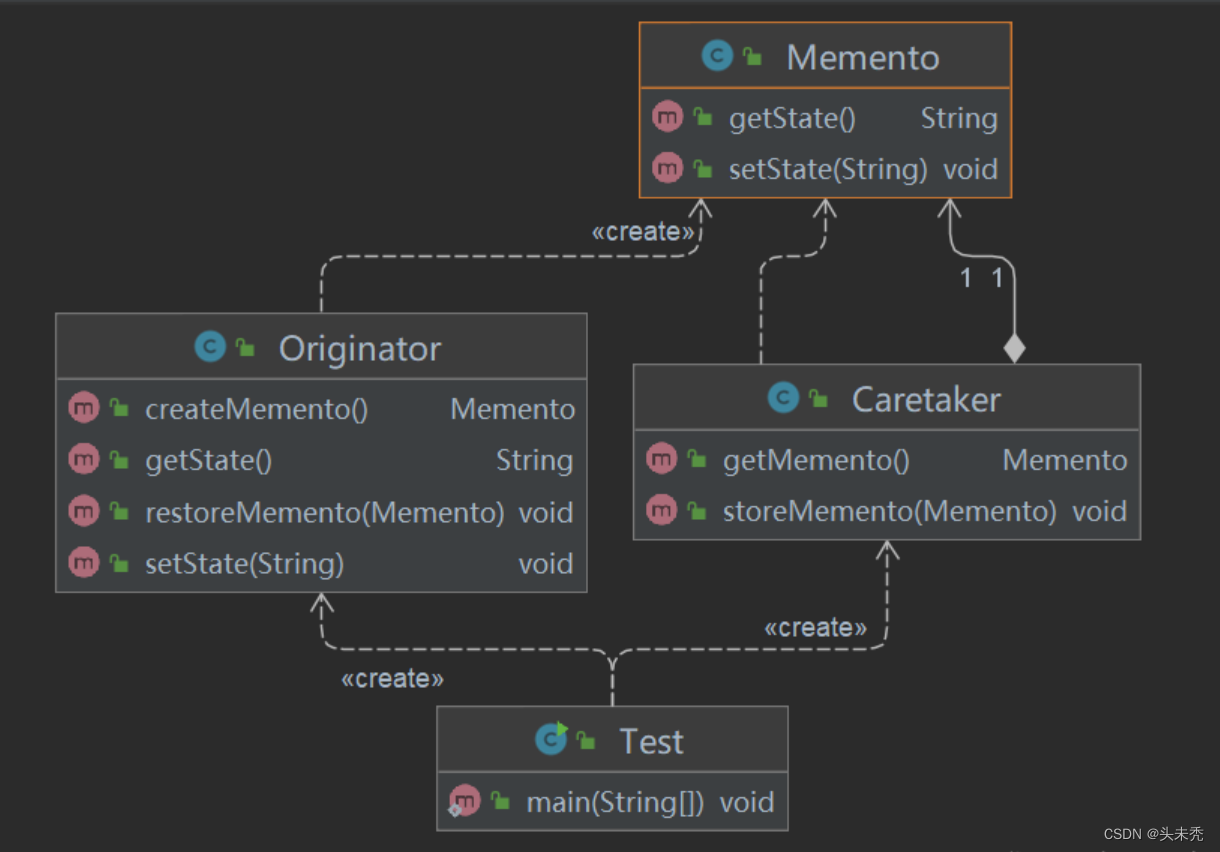 - 信息的封装,一个备忘录对象是一种原发器对象状态的表示,不会被其他代码所改动。备忘录保存了原发器的状态,采用列表、堆栈等集合来存储备忘录对象可以实现多次撤销操作。