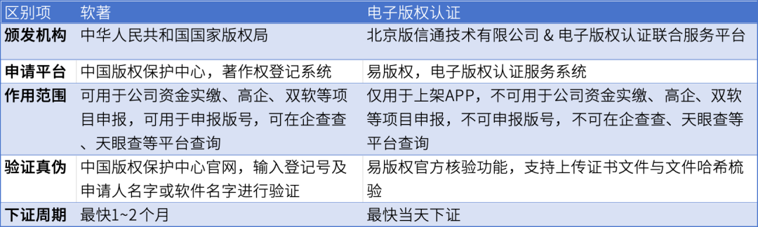 电子版权认证和软著的区别