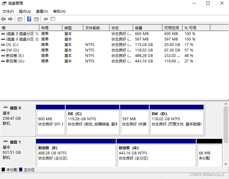 (1)打开我的电脑——管理——磁盘管理,重新刷新扫描磁盘